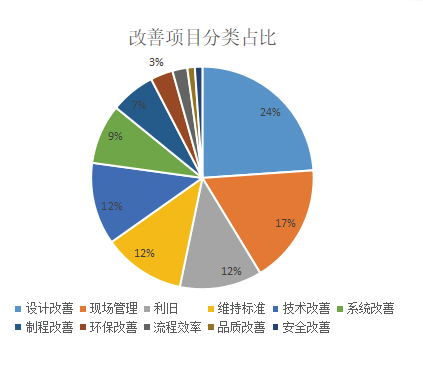 9月11日,精益改善辦組織開展了8月份精益改善現(xiàn)場和線上發(fā)表會,共41個部門參加了發(fā)表。8月份各部門改善項(xiàng)目共92項(xiàng),其中設(shè)計改善占比達(dá)24%,本項(xiàng)改善傾向于新設(shè)備的引進(jìn)、新方法的使用、自動化聯(lián)鎖的使用、工藝過程的革新;體現(xiàn)了各部門立足業(yè)務(wù)流程,解決根本問題的立足點(diǎn);系統(tǒng)改善重點(diǎn)體現(xiàn)在流程再造及固化、表單優(yōu)化、信息資源整合等方面的改善。本月利舊改善項(xiàng)目約12.89萬元,也體現(xiàn)了各部門響應(yīng)公司修舊利廢號召的積極性。改善中占比最高的為設(shè)計類改善,設(shè)計改善傾向于新設(shè)備的引進(jìn)、新方法的使用、自動化聯(lián)鎖的使用、工藝過程的革新;系統(tǒng)改善重點(diǎn)體現(xiàn)在流程再造及固化、表單優(yōu)化、信息資源整合等方面的改善。